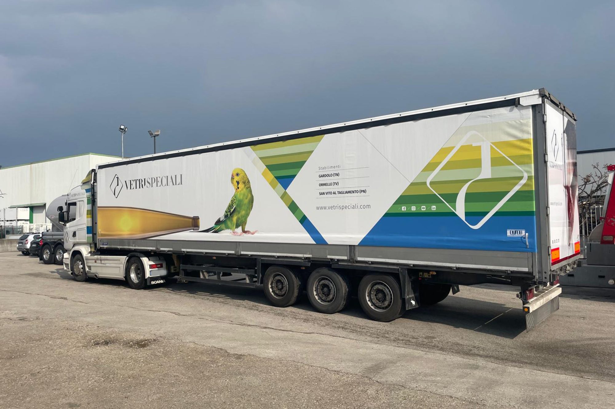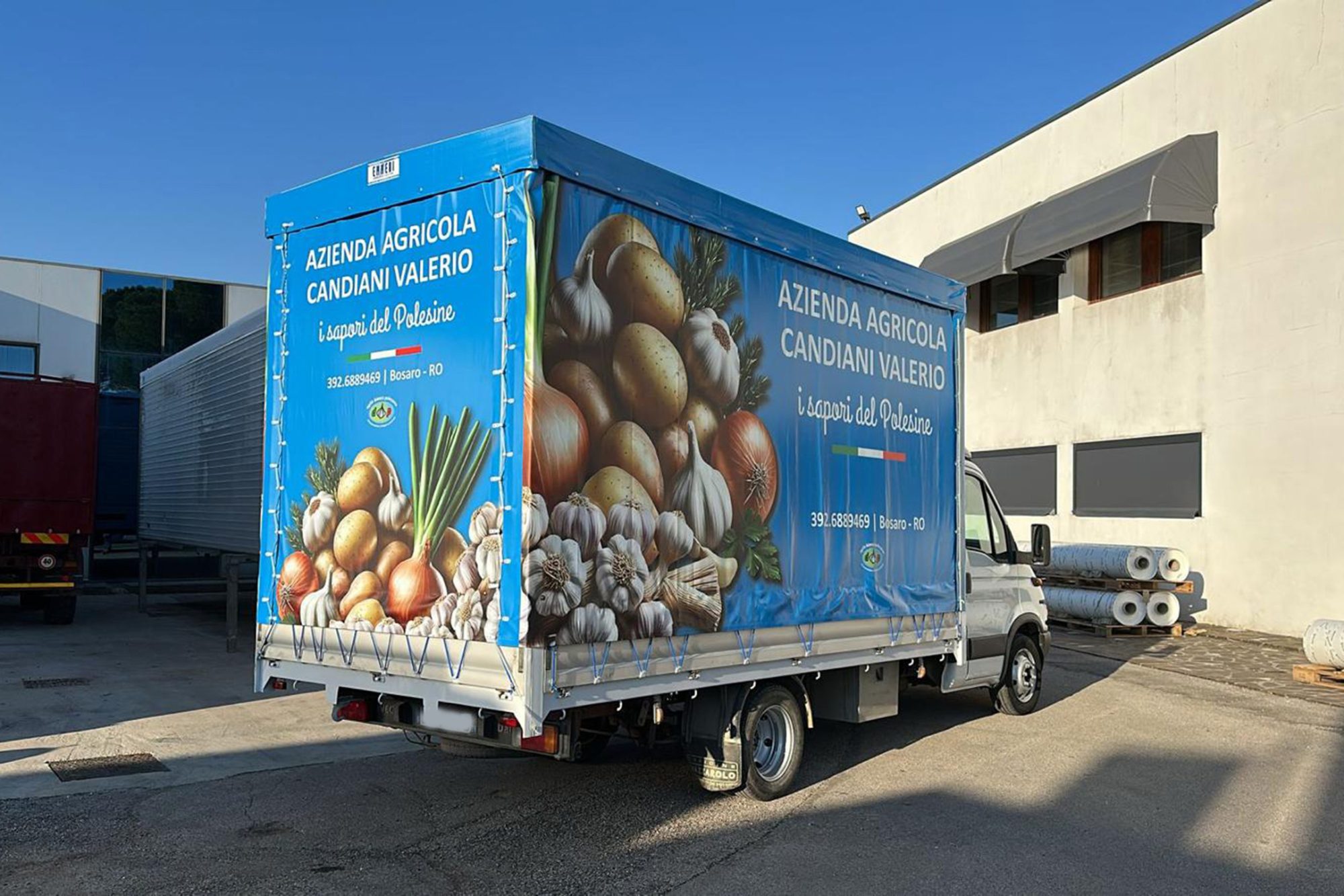 Le decorazioni possono essere applicate sia su supporti piani che sagomati, quindi possiamo prevedere anche l’allestimento di trattori e motrici come automobili e furgoni.