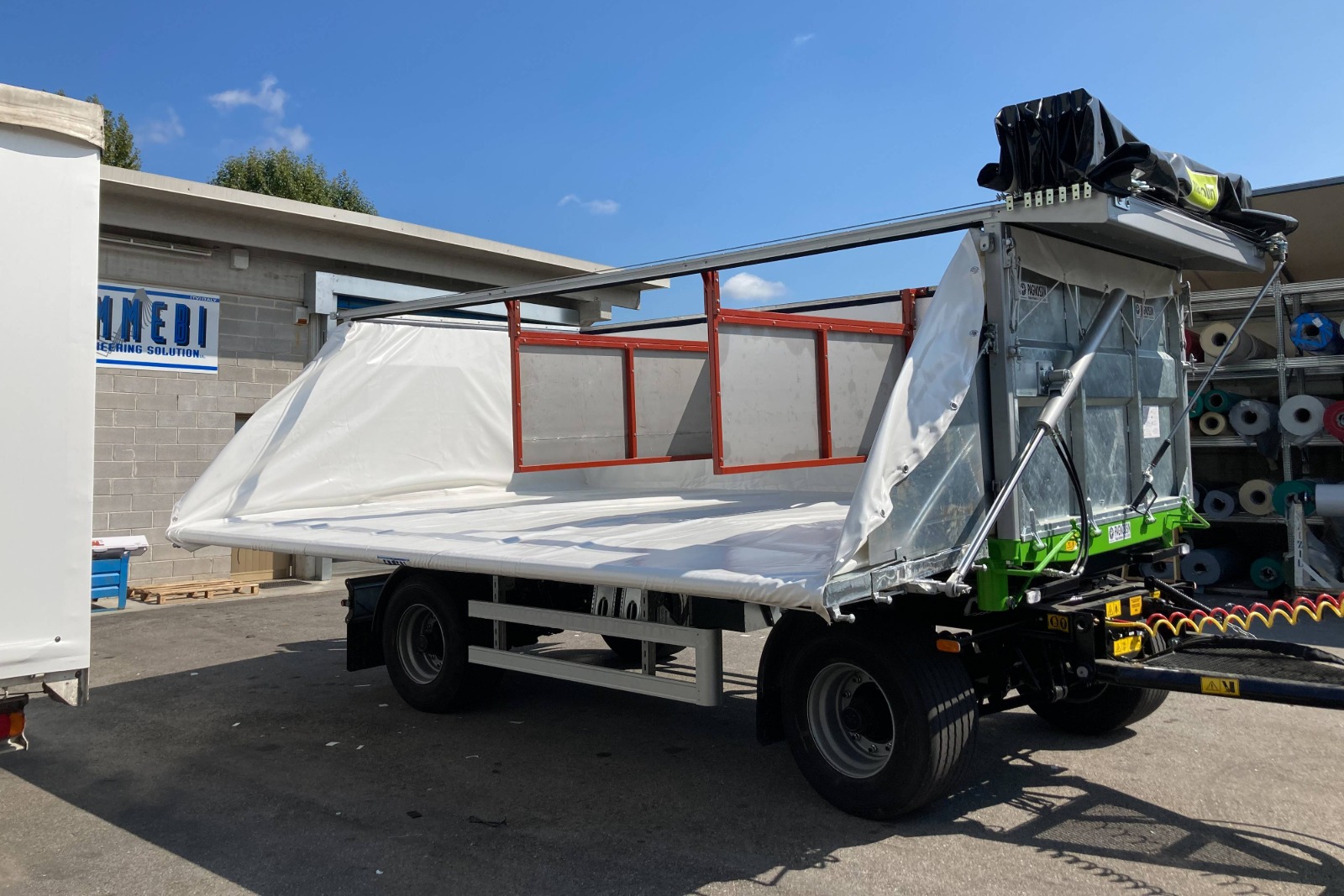 Da molti anni Emmebi confeziona su misura teloni ad uso agricolo utilizzando speciale tessuto in PVC atossico certificato marchiato per uso alimentare idoneo per il trasporto di uva, pomodori e tutto ciò che riguarda il trasporto alimentare. Grazie ad un sistema di aggancio al pianale, è possibile realizzare teloni per qualsiasi tipo di rimorchio sagomandosi perfettamente al perimetro e garantendo così maggiore sicurezza dell’operatore sia nello scarico che nel carico del materiale.