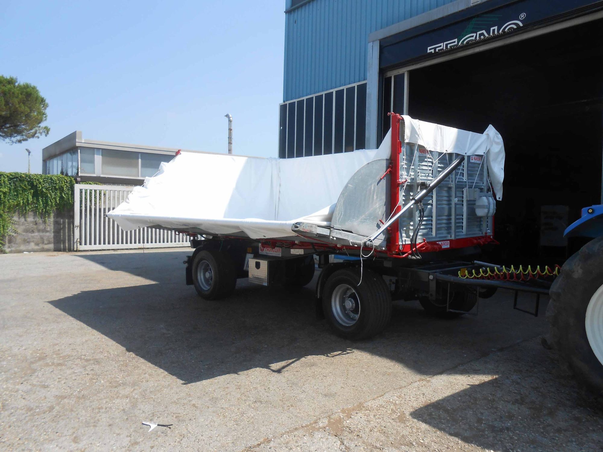 Da molti anni Emmebi confeziona su misura teloni ad uso agricolo utilizzando speciale tessuto in PVC atossico certificato marchiato per uso alimentare idoneo per il trasporto di uva, pomodori e tutto ciò che riguarda il trasporto alimentare. Grazie ad un sistema di aggancio al pianale, è possibile realizzare teloni per qualsiasi tipo di rimorchio sagomandosi perfettamente al perimetro e garantendo così maggiore sicurezza dell’operatore sia nello scarico che nel carico del materiale.