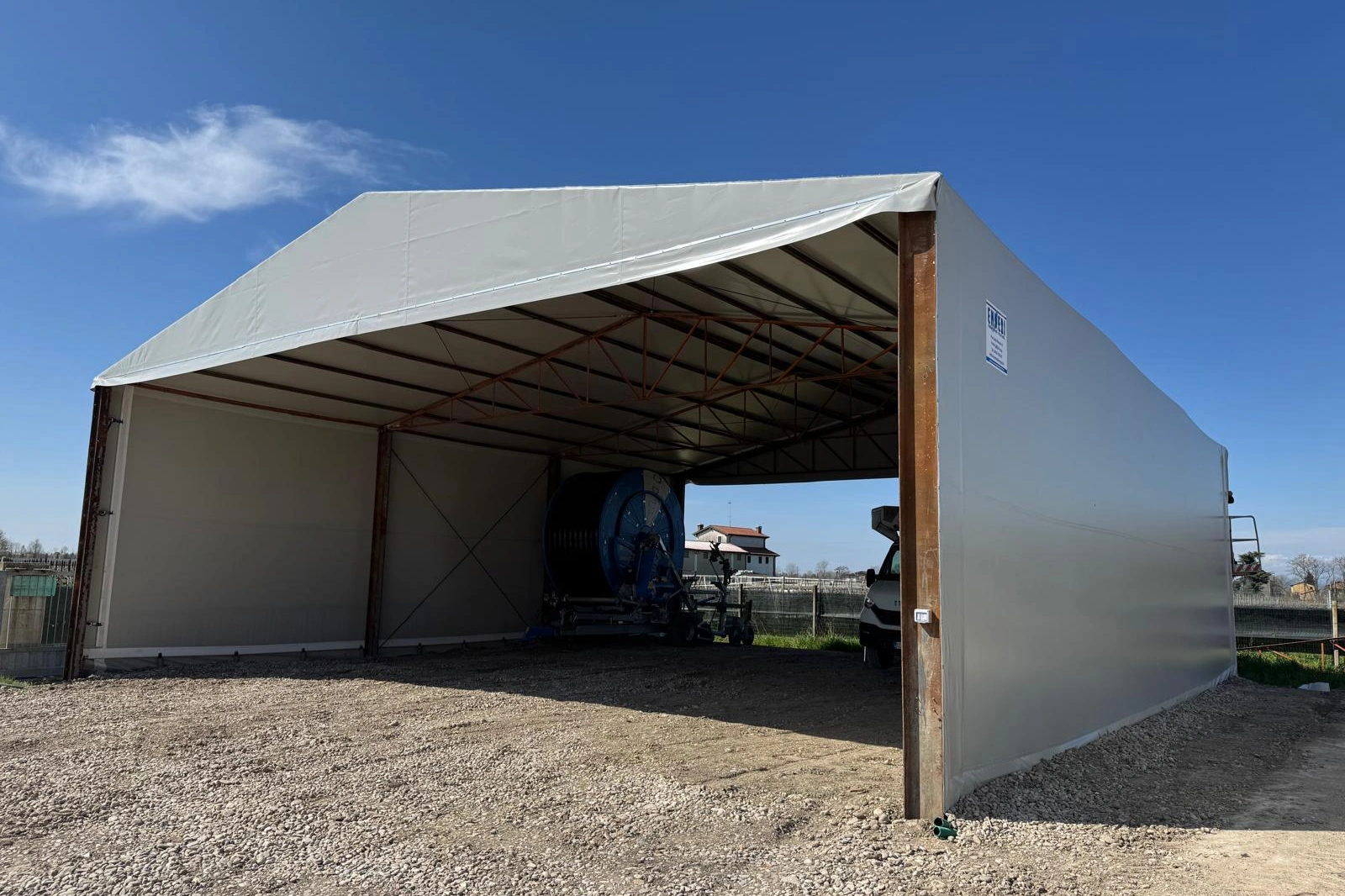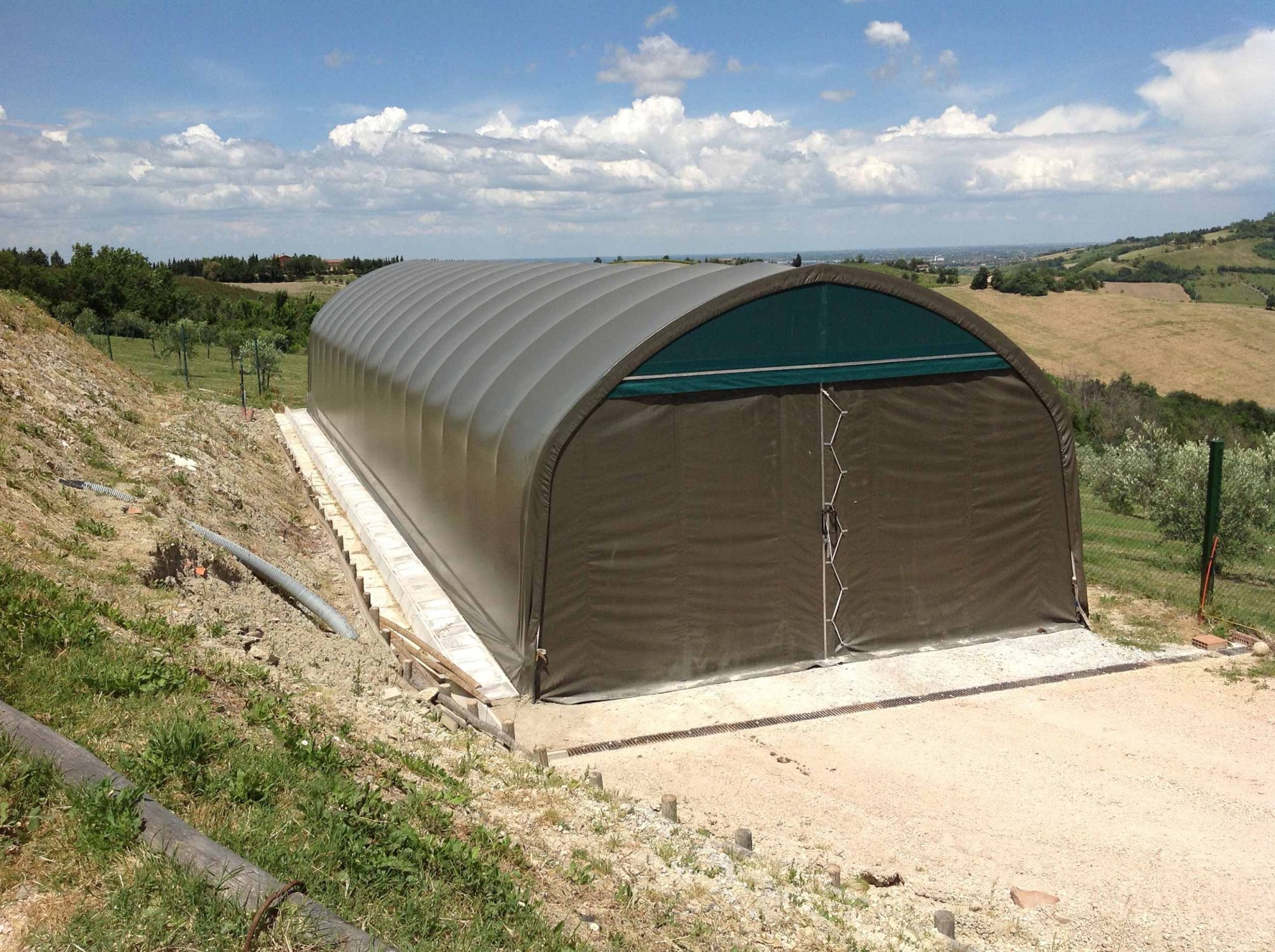 Un tunnel agricolo proposto da Emmebi Engineering Solution, che viene chiamato a Gamba Dritta, è la migliore soluzione per risolvere esigenze di elevati stoccaggi in verticale delle merci, o per il ricovero di macchinari di notevole ingombro verticale. Questo tipo di tunnel, simile per portata e resistenza ad un vero e proprio capannone agricolo, non necessita di fondazioni perché ancorato con picchetti interrati con un maggior risparmio rispetto ad un capannone non avendo le fondazioni ma garantendo la stessa resistenza alla portata neve e spinta del vento.